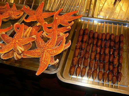Despite my pictures, Beijing is full of European restaurants. If you like Chinese food and you end up a bit further away from the tourist places you’ll have an excellent dinner and cheap also. The malls are full of well known fast foods, KFC being the most popular. For a more special dinner go at the end of Wangfujing for locusts, scorpions and other delicacies.