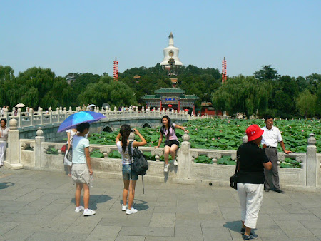 There are other places worth visiting that are less large…there’s the Beihai Park, with a lake, water lilies just like at the Summer Palace, but dominated by a huge Buddhist, a Tibetan –like stupa, there’s the Zhongshan park behind the Forbidden City.