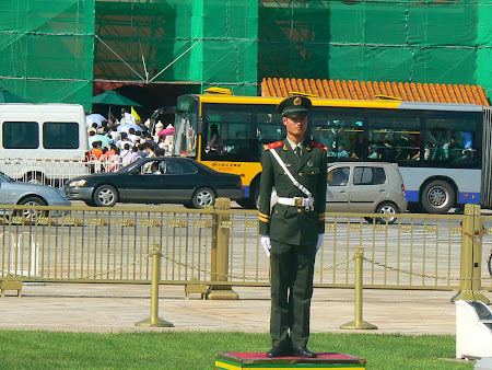 And while being among giants we cannot miss the biggest square in the world – the famous Tiananmen. Mankind has learned this Chinese word that means “Heavenly Peace” in 1989 when tanks crushed the democratic revolution started by students. But this square was created by communists, not democrats. Its greatness was thought of by Mao Zedong, who wished for a larger square than Moscow’s Red Square, and during the years of the Cultural Revolution almost a million people took part in parades, that were worthy of the most populated country in the world. Today in this center of the Chinese universe you can walk, take pictures, attend to different organized events, but you cannot ride a bike (by tank it’s OK, apparently). The square is surrounded by worthy buildings- on one side the classic history – Tiananmen gate that leads to the Forbidden City. On the other side there the National History Museum, a pretty Stalinist building, that will mirror the 5000 years old history of China. On another margin there is the Party head quarter and in the middle of the square the huge Mausoleum belonging to Mao, with the embalmed body of the Great Helmsman, that you can visit if you get up early and are willing to stay at a pretty long queue.